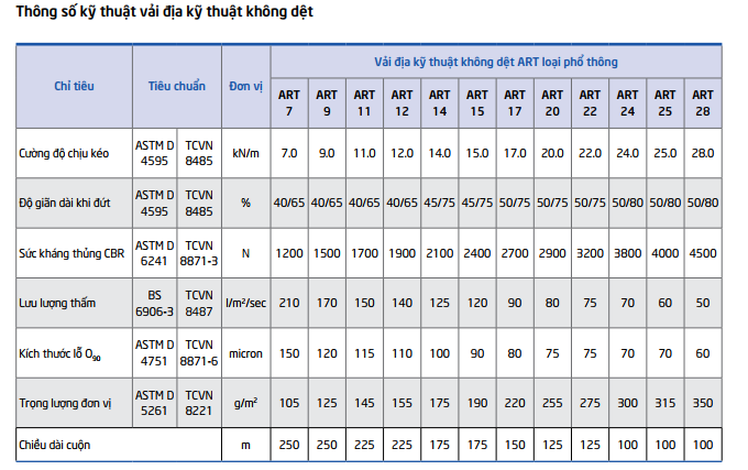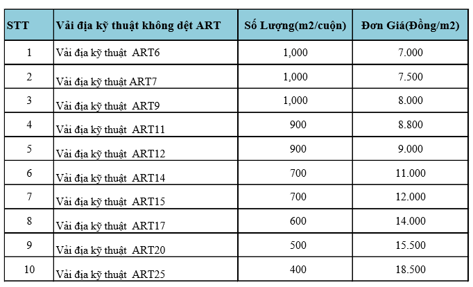BÁO GIÁ VẢI ĐỊA KỸ THUẬT KHÔNG DỆT ART